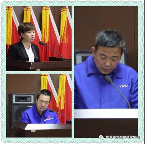 集团公司党委副书记、总经理李奎锦在会上作了题为《守正创新谋发展 擎旗勇进立潮头 奋力开创雅盐高质量发展新局面》的工作报告。 李奎锦在报告中指出,2020年,集团公司以巩固深化“不忘初心,牢记使命”主题教育成果为主题,以“化工项目建设年”为抓手,大力推行精益生产和精细化管理,持续巩固拓展销售市场,持续优化升级产品结构,延伸产业链,以创新理念、创新思维、创新举措,积极应对各类风险和挑战。经过不懈努力,圆满完成年度各项目标任务。 报告从五个方面回顾了2020年以来的重点工作:一是加大激励、加强管控,夯实基础促生产;二是多措并举、多管齐下,提质增量促销售;三是兴办实事、兴办好事,凝聚力量促和谐;四是大抓技改、狠抓项目,增强后劲促发展;五是正风肃纪、正本清源,优化环境促稳定。 报告明确,2021年预期经营目标是:集团公司本部全年计划生产各类盐品21.2万吨,成品加工盐2.4万吨,筑装小工业盐0.8万吨,销售各类盐品24万吨,实现营业收入5,350.00万元,回收货款6,000.00万元;实现税金980.00万元,实现利润总额380.00万元;内蒙古隆宝化工有限公司实现营业收入28,700.00万元,实现利润总额7,260.00万元,实现税费3,660.00万元,实现归属于隆宝总公司的利润总额2,500.00万元;内蒙古宇鸿能源有限公司实现营业收入430.00万元,实现利润总额80.00万元,实现税费40.00万元;内蒙古旭翔化工有限公司实现营业收入485.00万元,实现利润总额120.00万元,实现税费55.00万元;内蒙古雅布赖染料有限公司实现营业收入275.00万元,清收历年货款60.00万元;金昌金雅德化工有限公司计划生产硝酸4万吨,销售硝酸4万吨,实现销售收入7,500.00万元。
